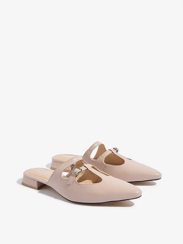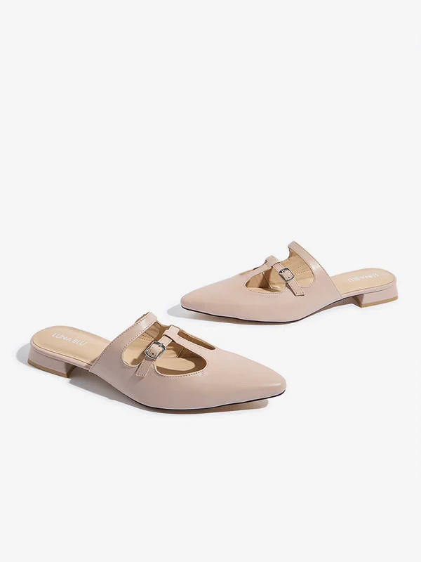 These nude mules sandals from Luna Blu blend elegance with everyday comfort. Designed with a sleek pointed toe and an intricate cut-out pattern, they are accented with a buckle strap for a refined touch. A soft insole ensures lasting comfort, while the textured outsole provides a secure grip.