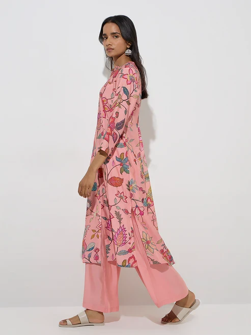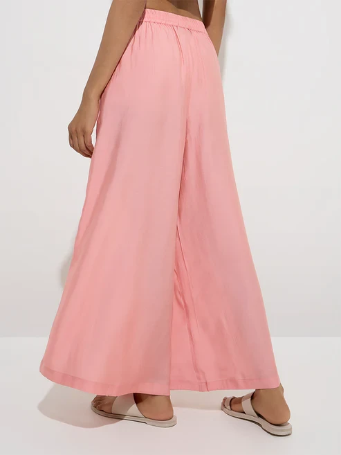 These pink palazzos from Utsa showcase a solid hue for versatile styling. Created for all-day comfort, they come with an elasticated waistband and adjustable drawstrings, offering a secure fit with an easy-going feel.